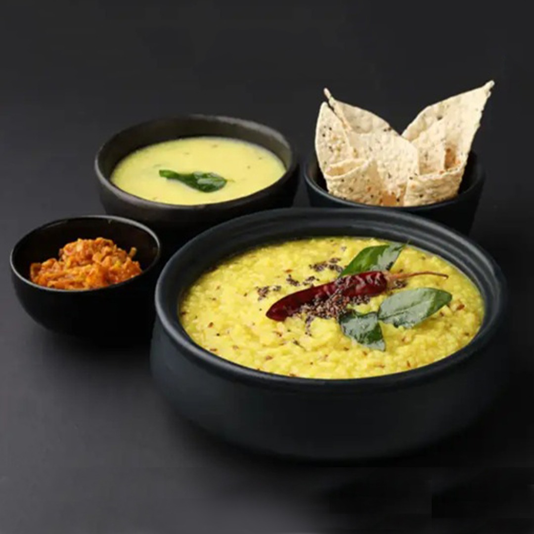 Prepared with love and rooted in tradition, our full thali features a delightful variety of dishes: from aromatic dals and tangy kadhi to seasonal sabzis, freshly prepared rotis, soft theplas, steamed rice, and tempting farsan. No thali is complete without sweet treats like shrikhand or mohanthal – all made fresh, in-house, and served with a smile.